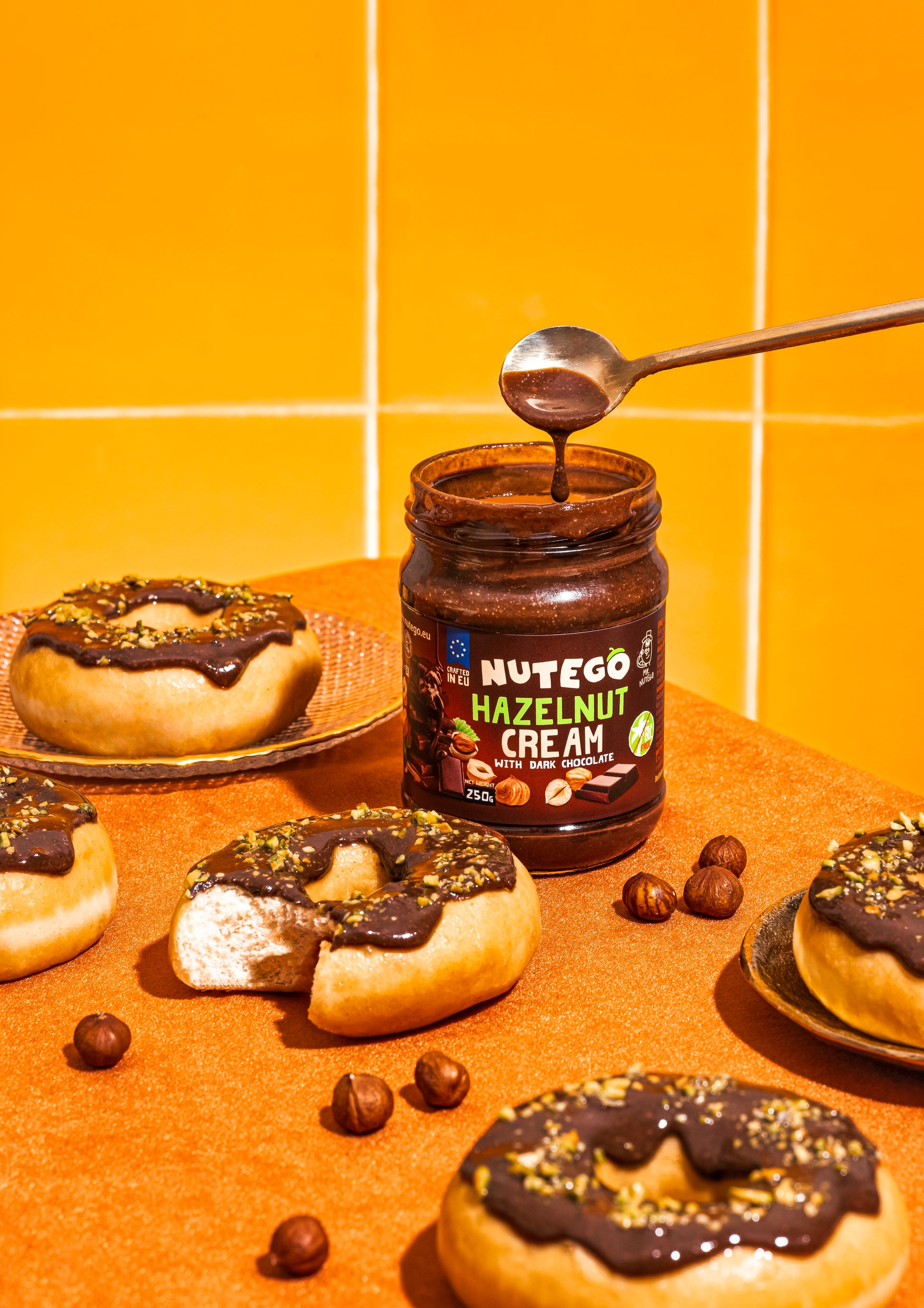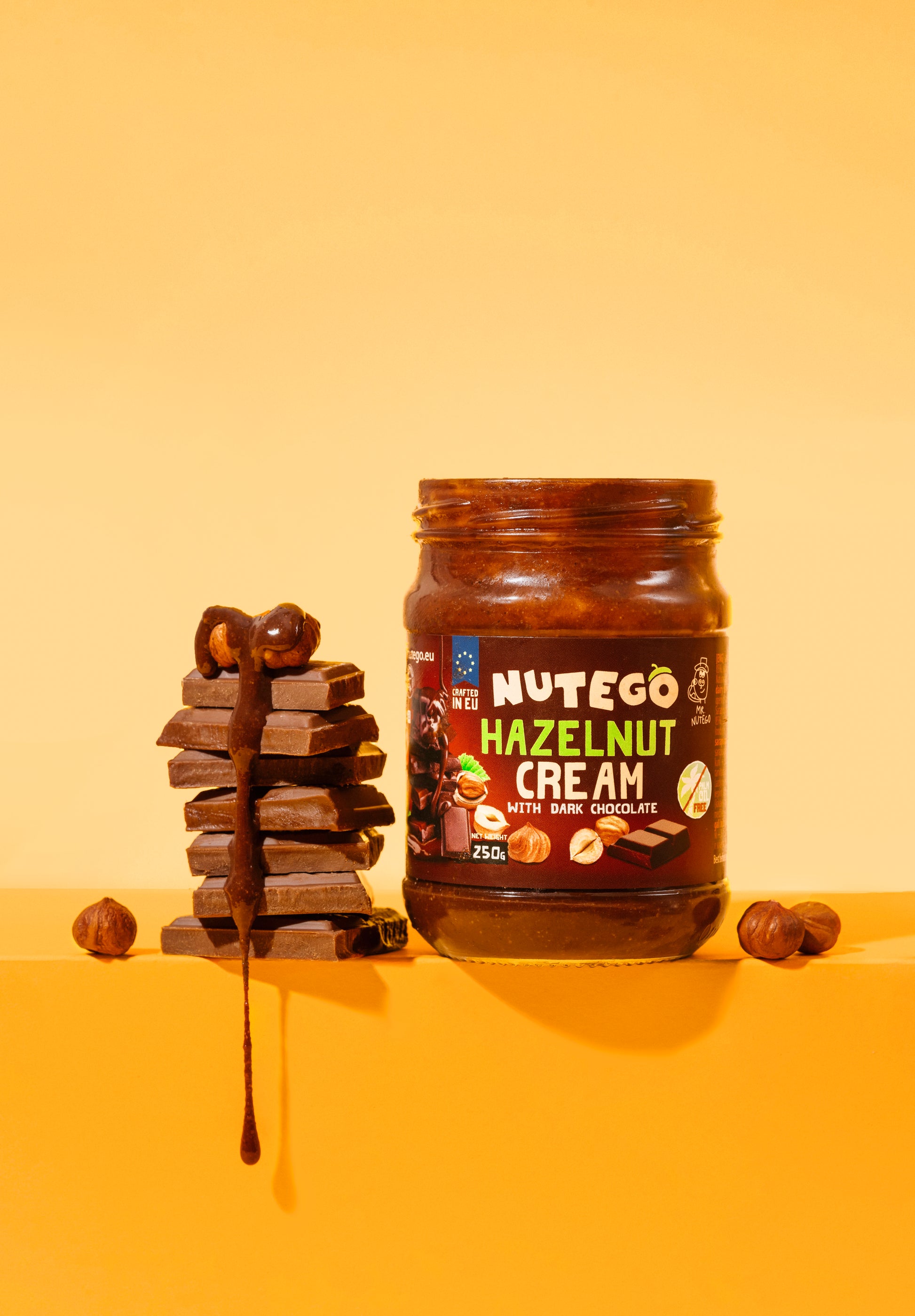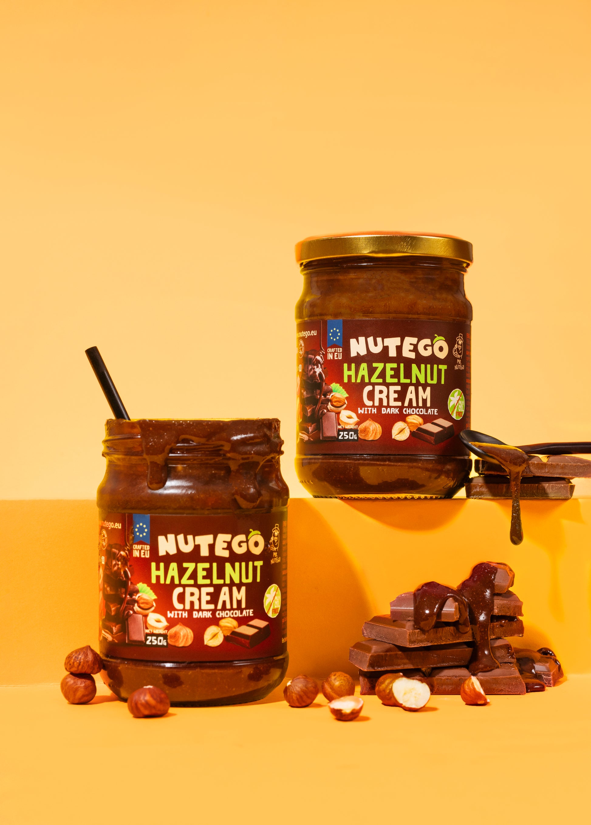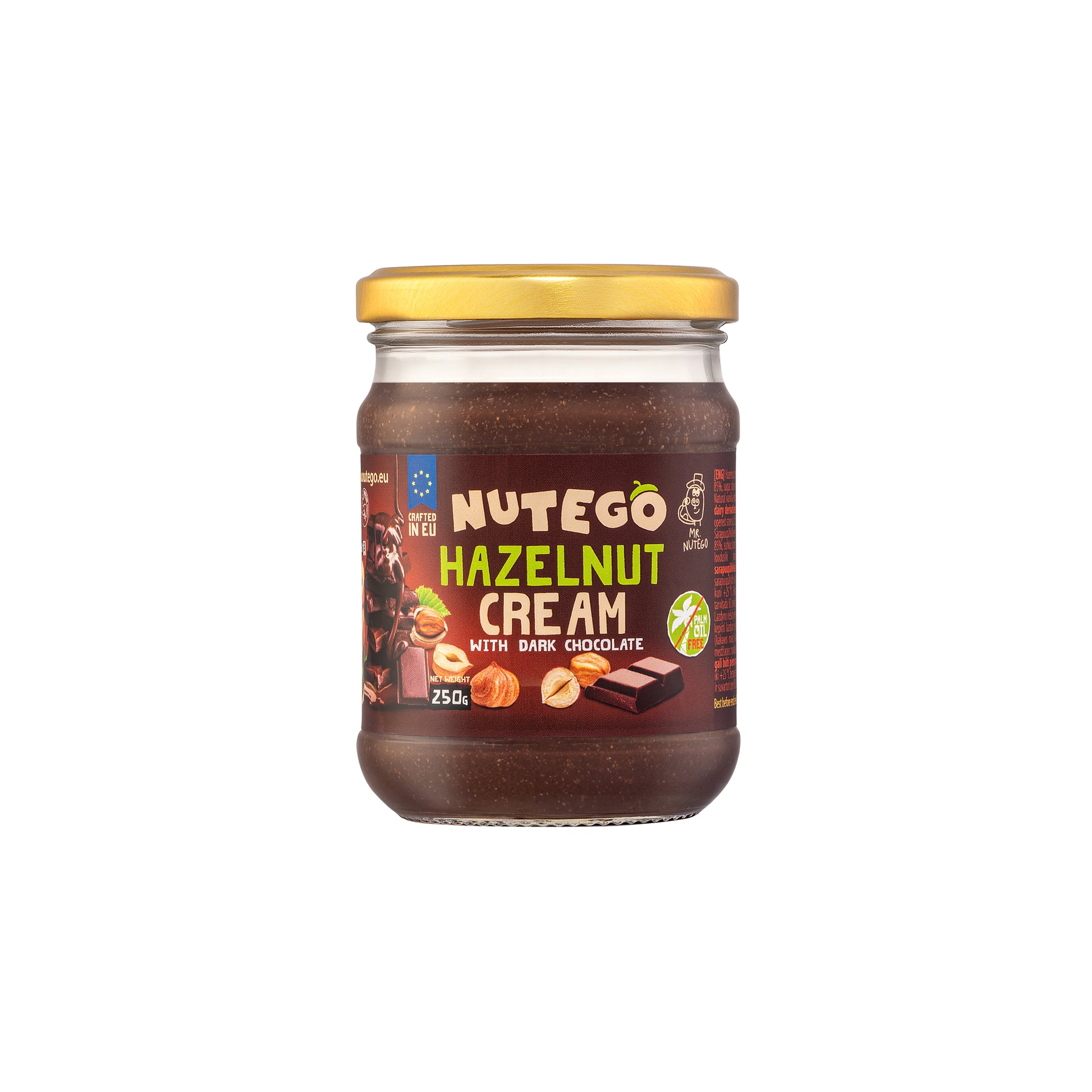 NUTEGO Hazelnut Cream with Dark Chocolate blends 84.6% premium Turkish hazelnuts with 6% real dark chocolate (69% cocoa content) for a bold, deep flavor that’s far from ordinary. Lightly sweetened and free from palm oil, it’s a clean indulgence for those who want real ingredients, not just sugar.