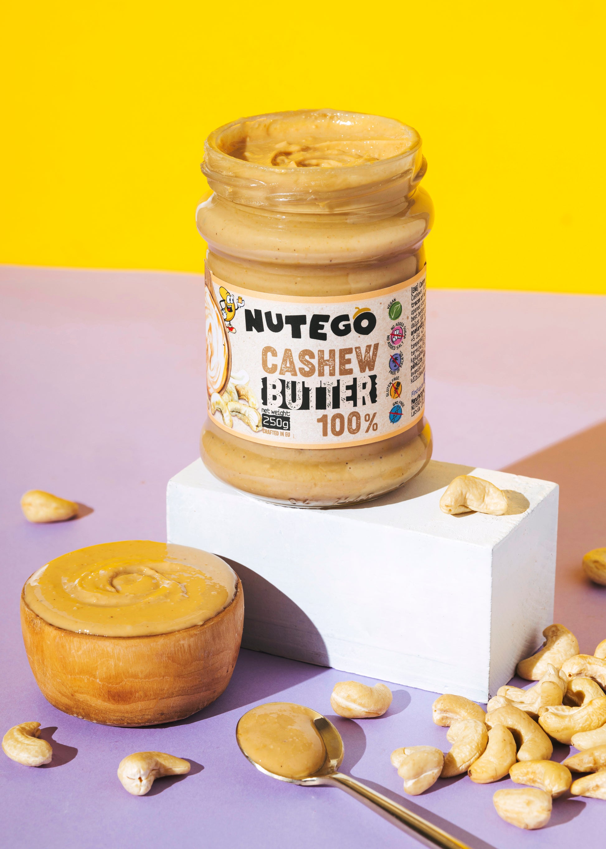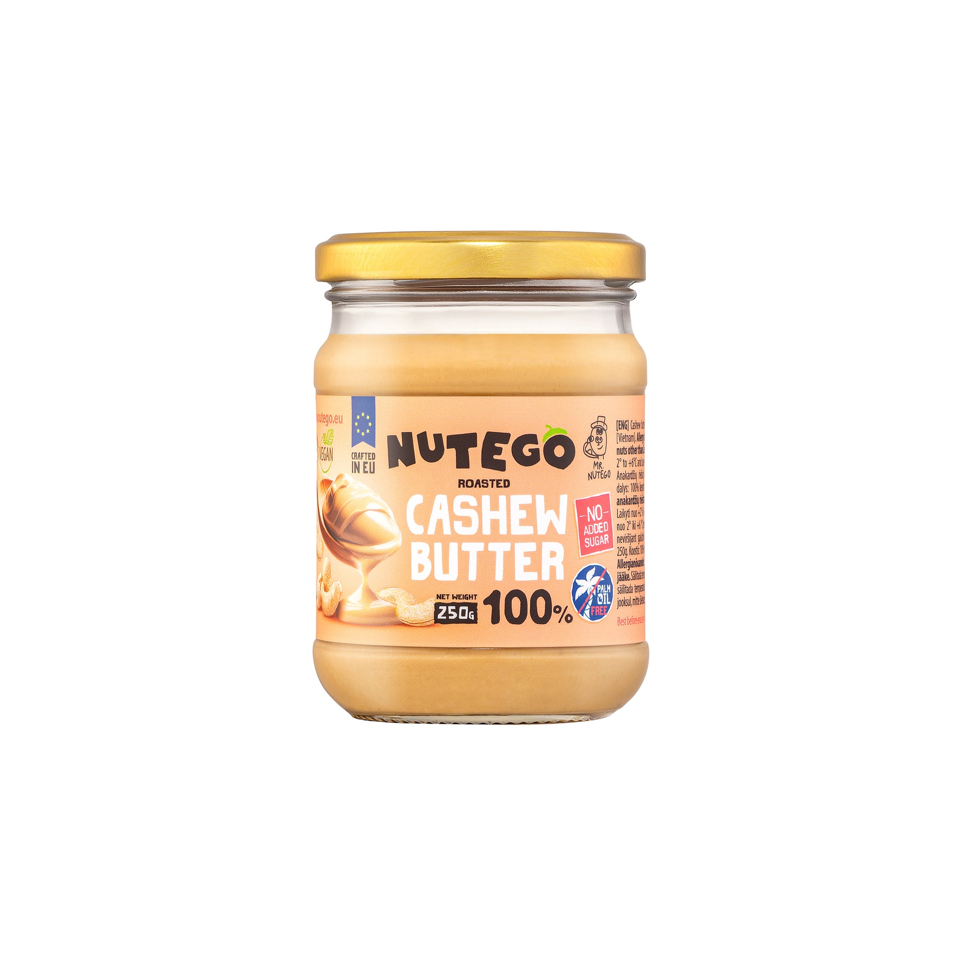 Cremig, natürlich süß und hergestellt aus nichts als gerösteten indonesischen Cashewnüssen — das ist NUTEGO 100% Cashewbutter. Rein, glatt und genussvoll einfach, ohne zugesetzten Zucker, Salz oder Öl. Nur der gesunde Reichtum von langsam gerösteten Cashewnüssen in jedem Löffel.
