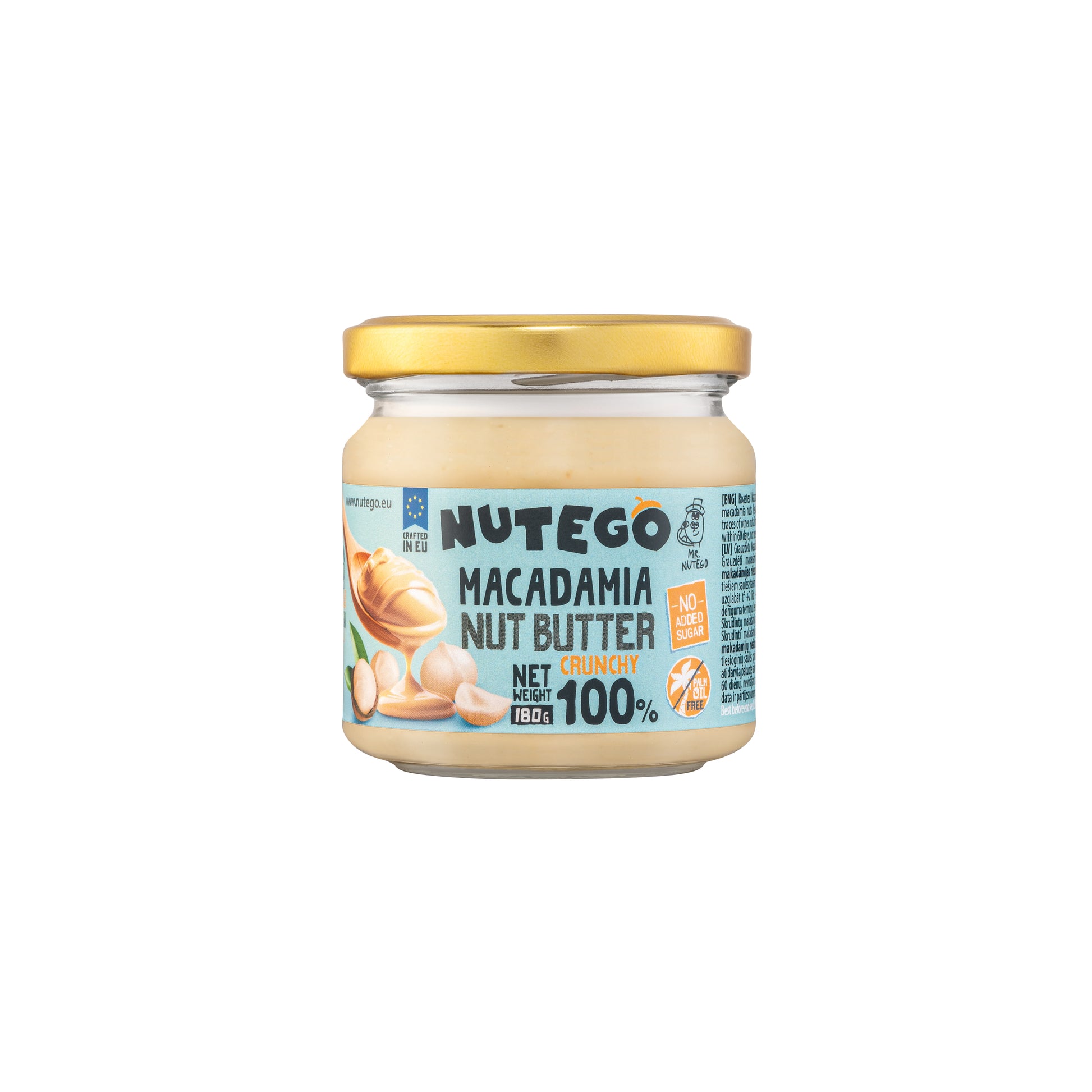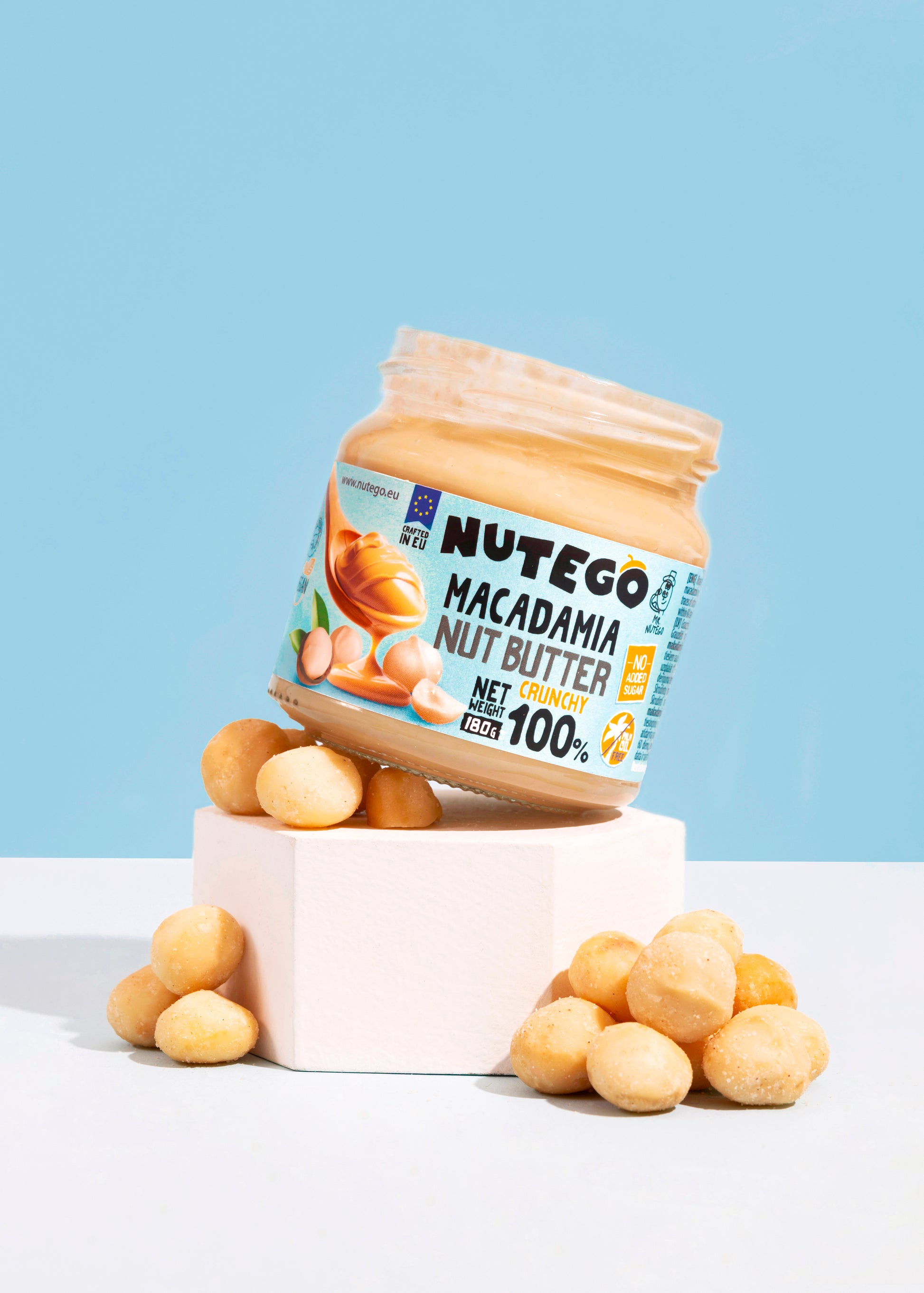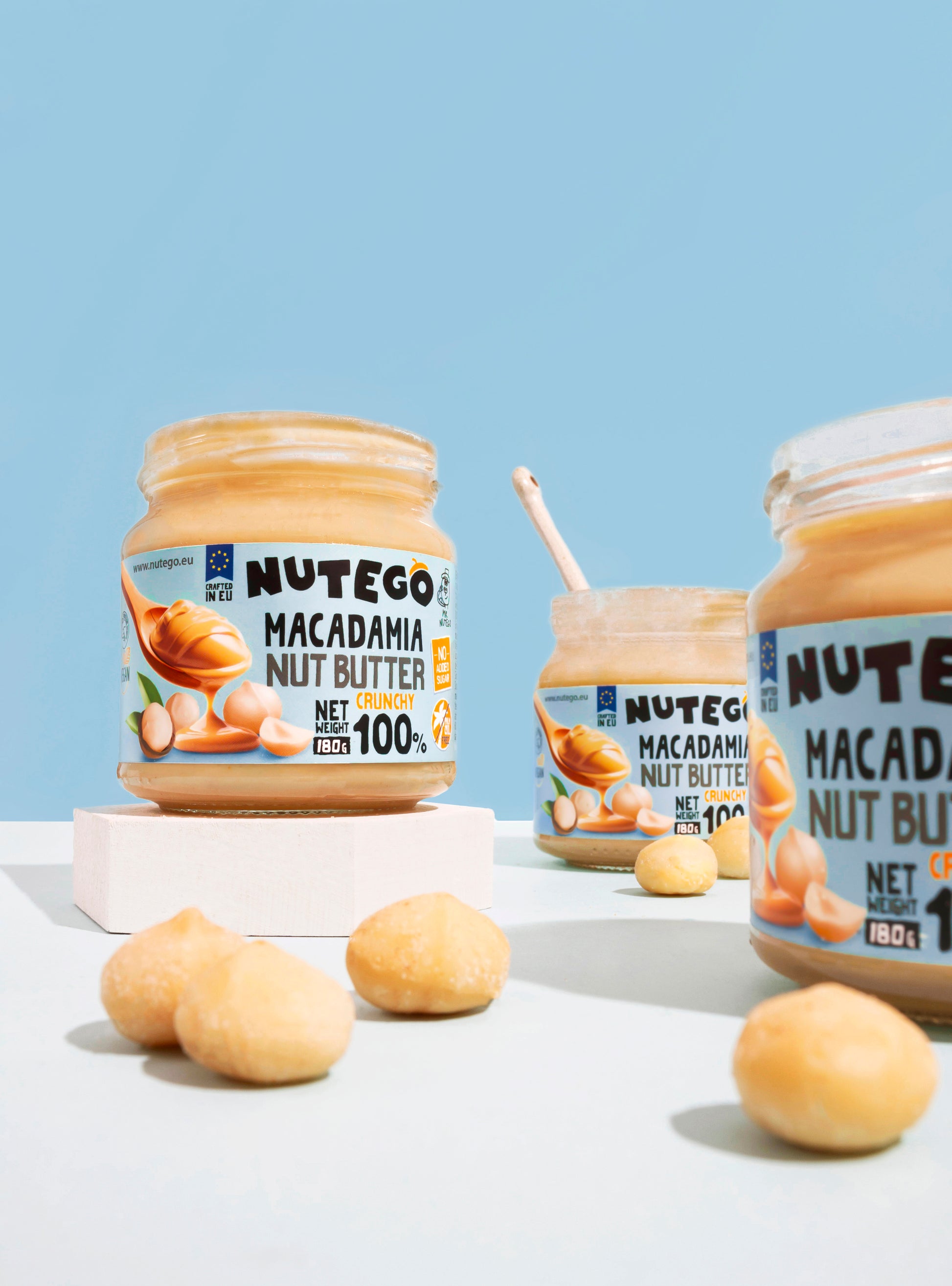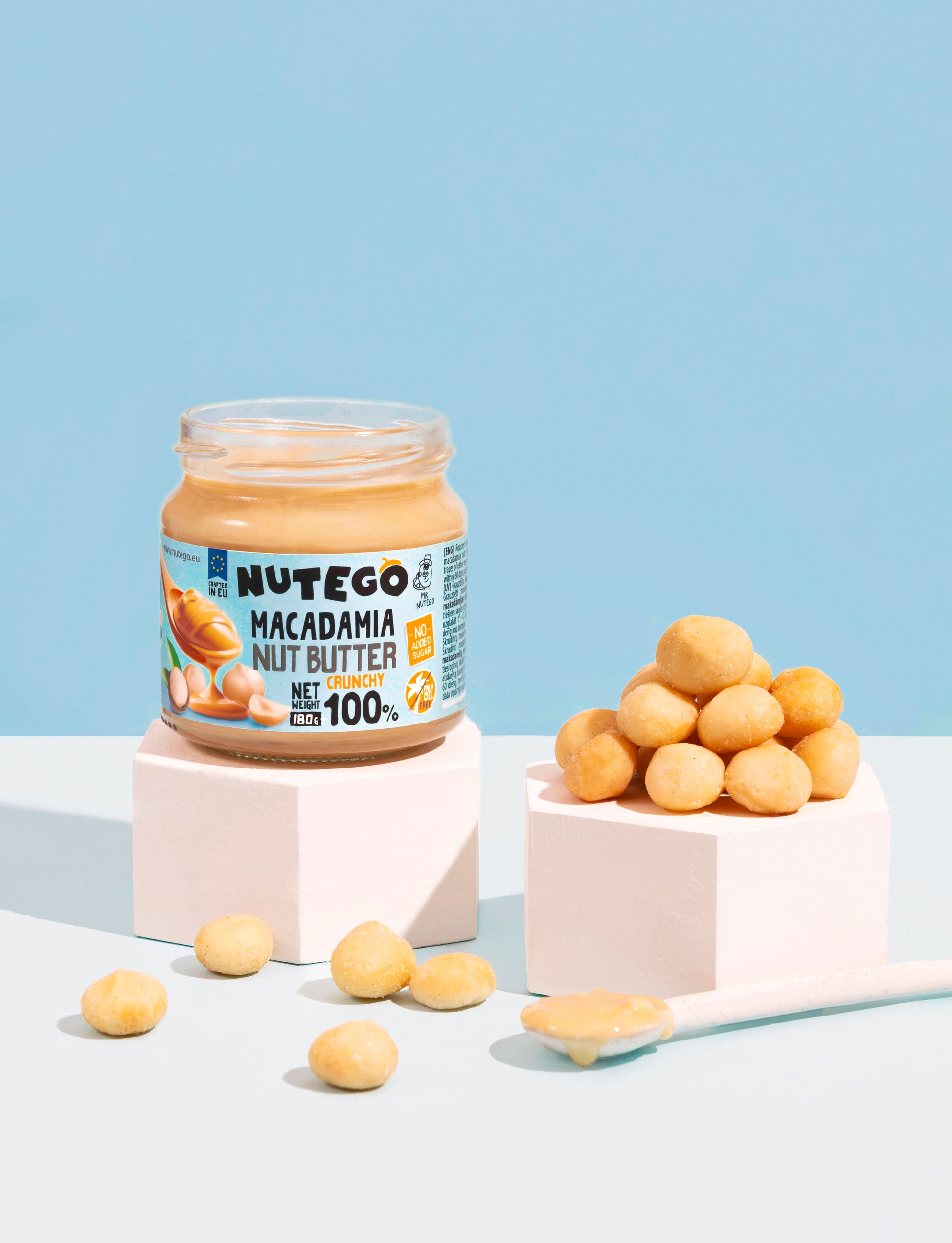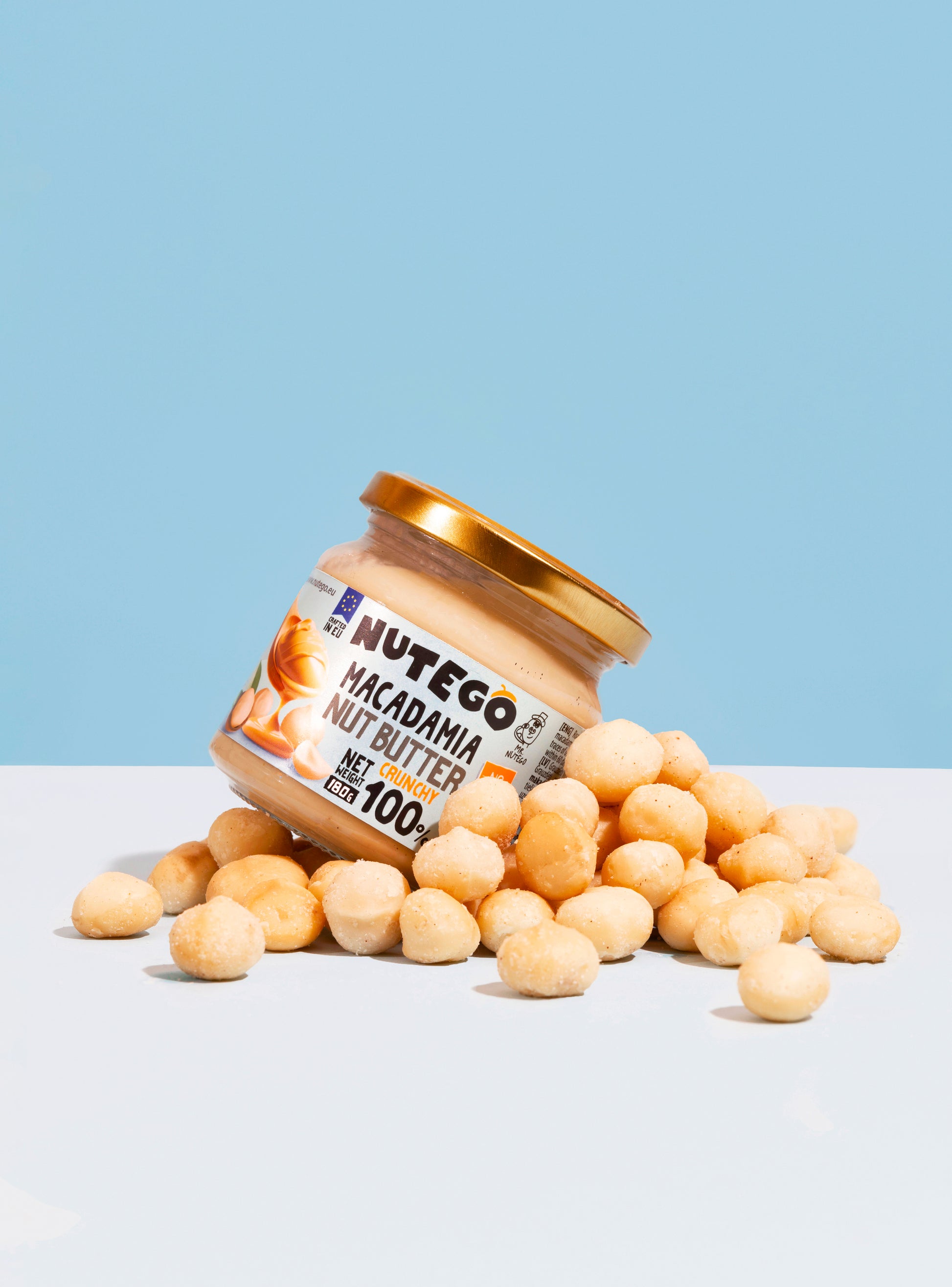 NUTEGO 100% Crunchy Macadamia Butter ist so rein, wie es nur geht – ausschließlich aus langsam gerösteten kenianischen Macadamianüssen hergestellt, ohne Zusatzstoffe und ohne Abstriche. Der natürlich buttrige Reichtum der Macadamias trifft in jedem Löffel auf einen befriedigenden Crunch.
