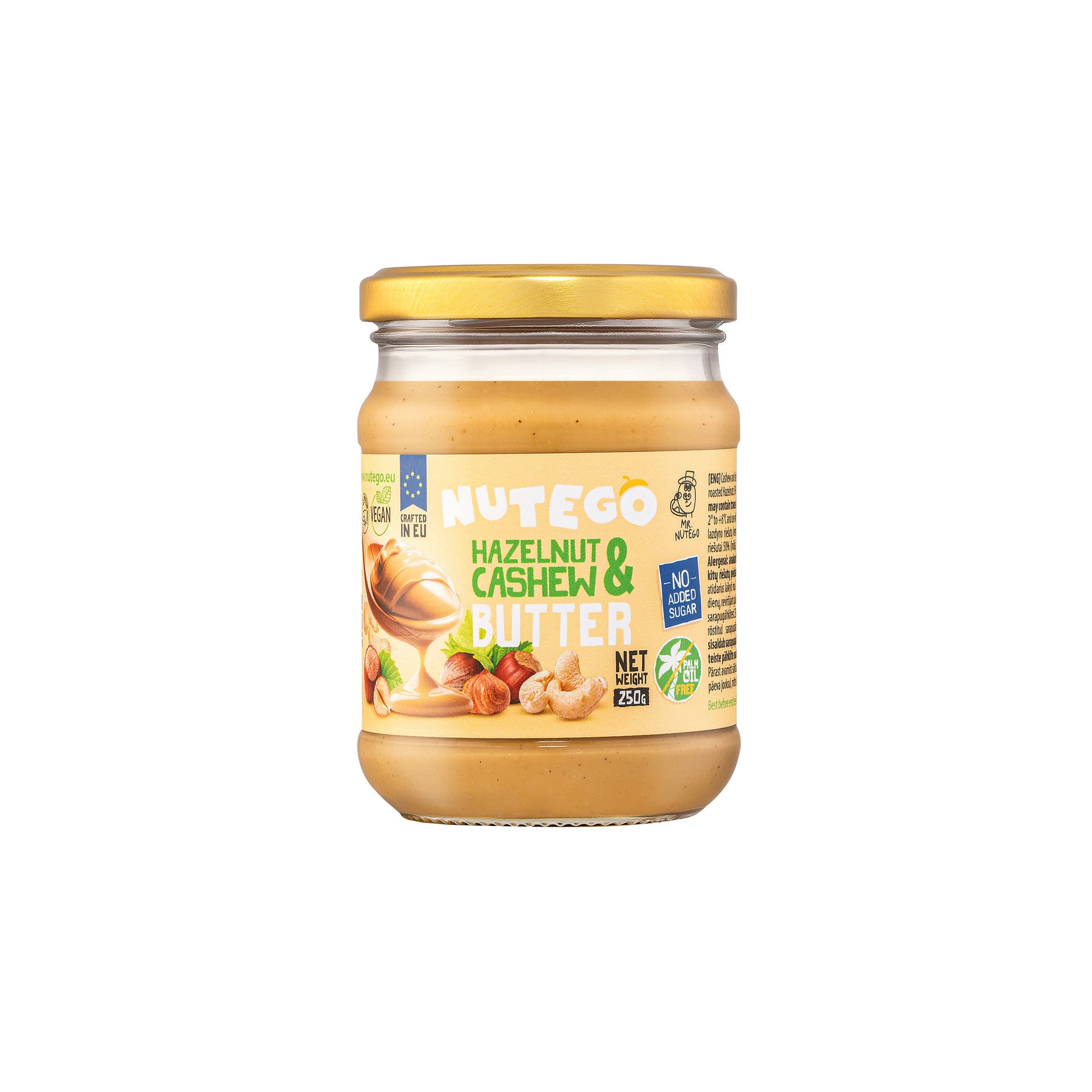 Für diejenigen, die glatte Verwöhnung mit einer nussigen Note lieben, bietet NUTEGO Haselnuss- & Cashewbutter 50/50 das Beste aus beiden Welten. Wir mischen 50 % geröstete Cashews aus Indonesien mit 50 % gerösteten Haselnüssen aus der Türkei, um einen natürlich süßen, cremigen Aufstrich ohne zugesetzten Zucker, Salz oder Öl zu kreieren – nur reine, saubere Energie aus der Natur.