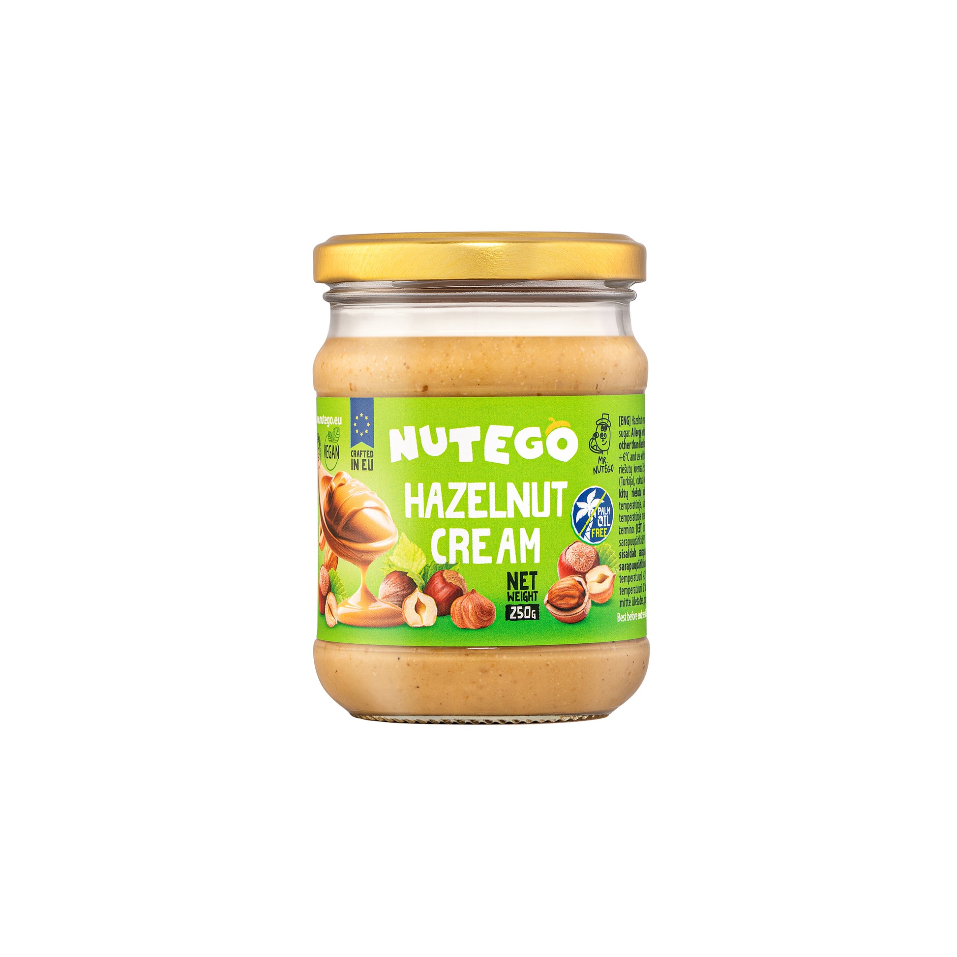 Lieben Sie Haselnüsse? Dann werden Sie das lieben. NUTEGO Haselnusscreme besteht aus 91 % hochwertigen türkischen Haselnüssen, die perfekt geröstet und leicht gesüßt sind für einen glatten, im Mund schmelzenden Aufstrich. Kein Palmöl, keine künstlichen Zutaten – nur reicher nussiger Geschmack und echte Zutaten.