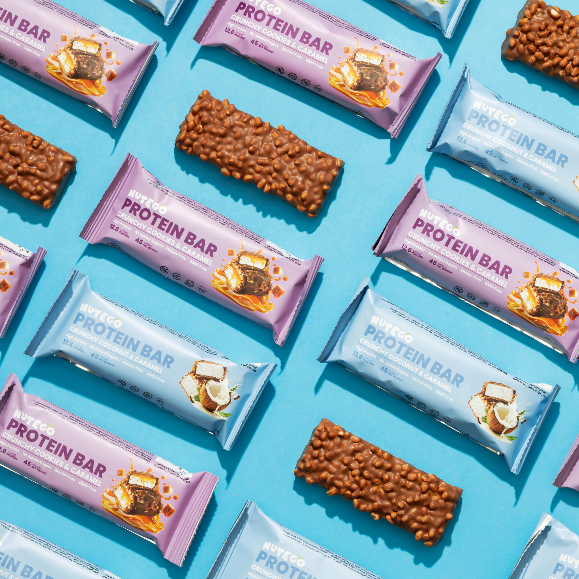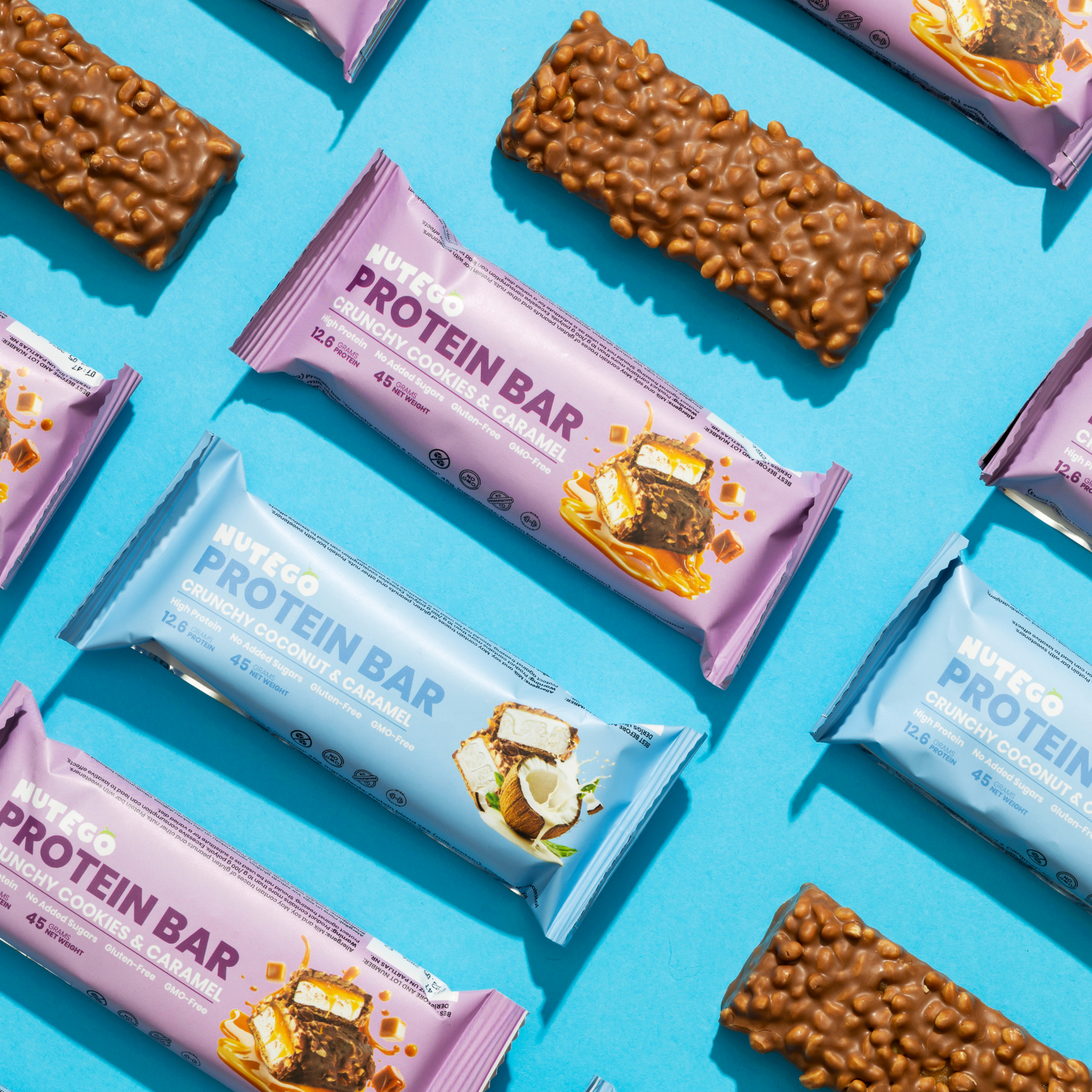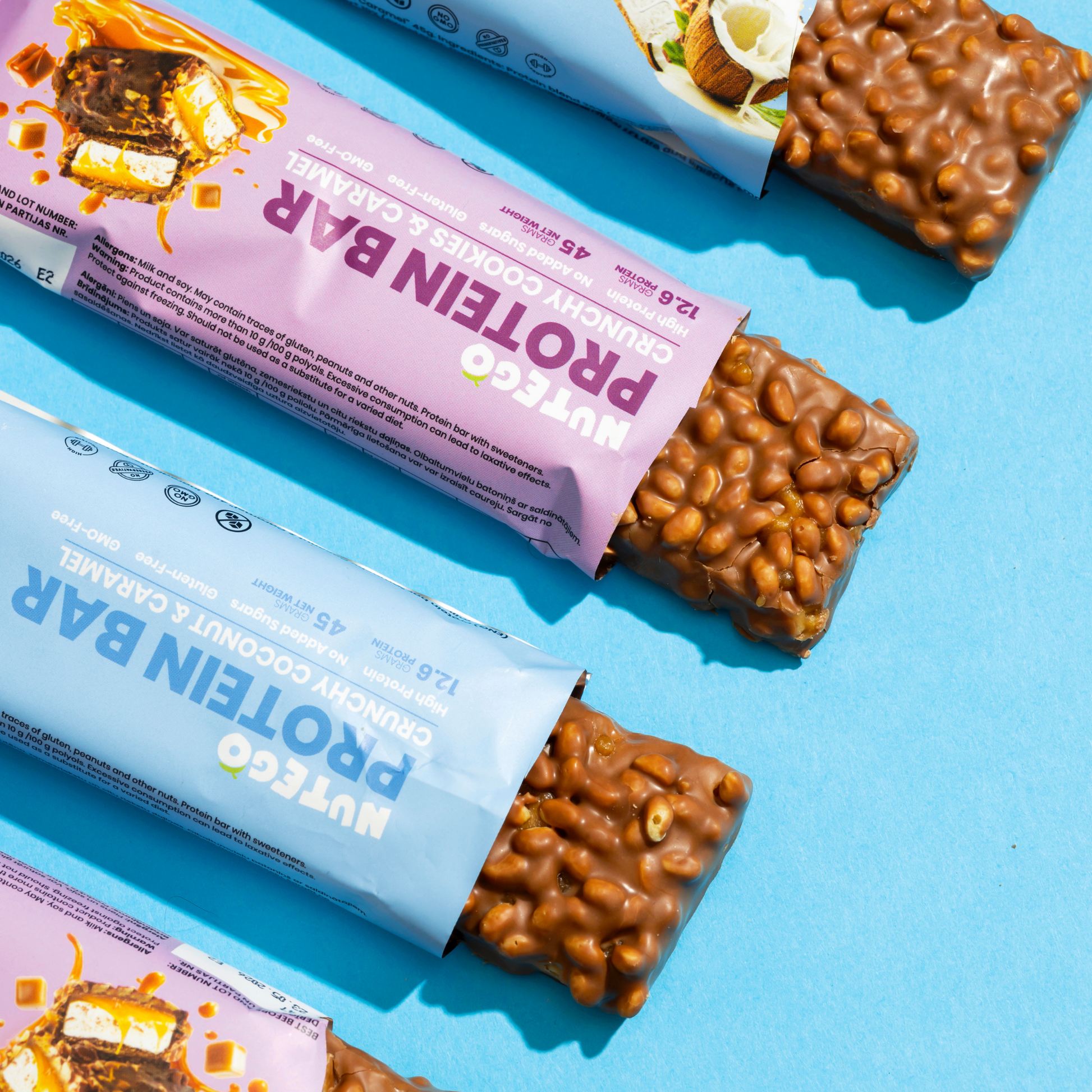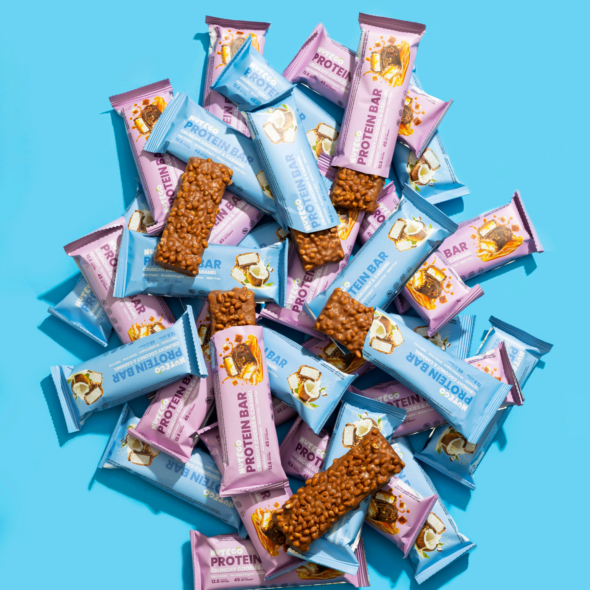 Der NUTEGO Protein Riegel „Crunchy Coconut & Caramel“ bietet genau das – eine köstliche Kombination aus cremigem Karamell, knusprigem Sojaprotein und echten Kokosflocken, alles eingehüllt in zarte Vollmilchschokolade aus Rainforest Alliance-zertifiziertem Kakao.